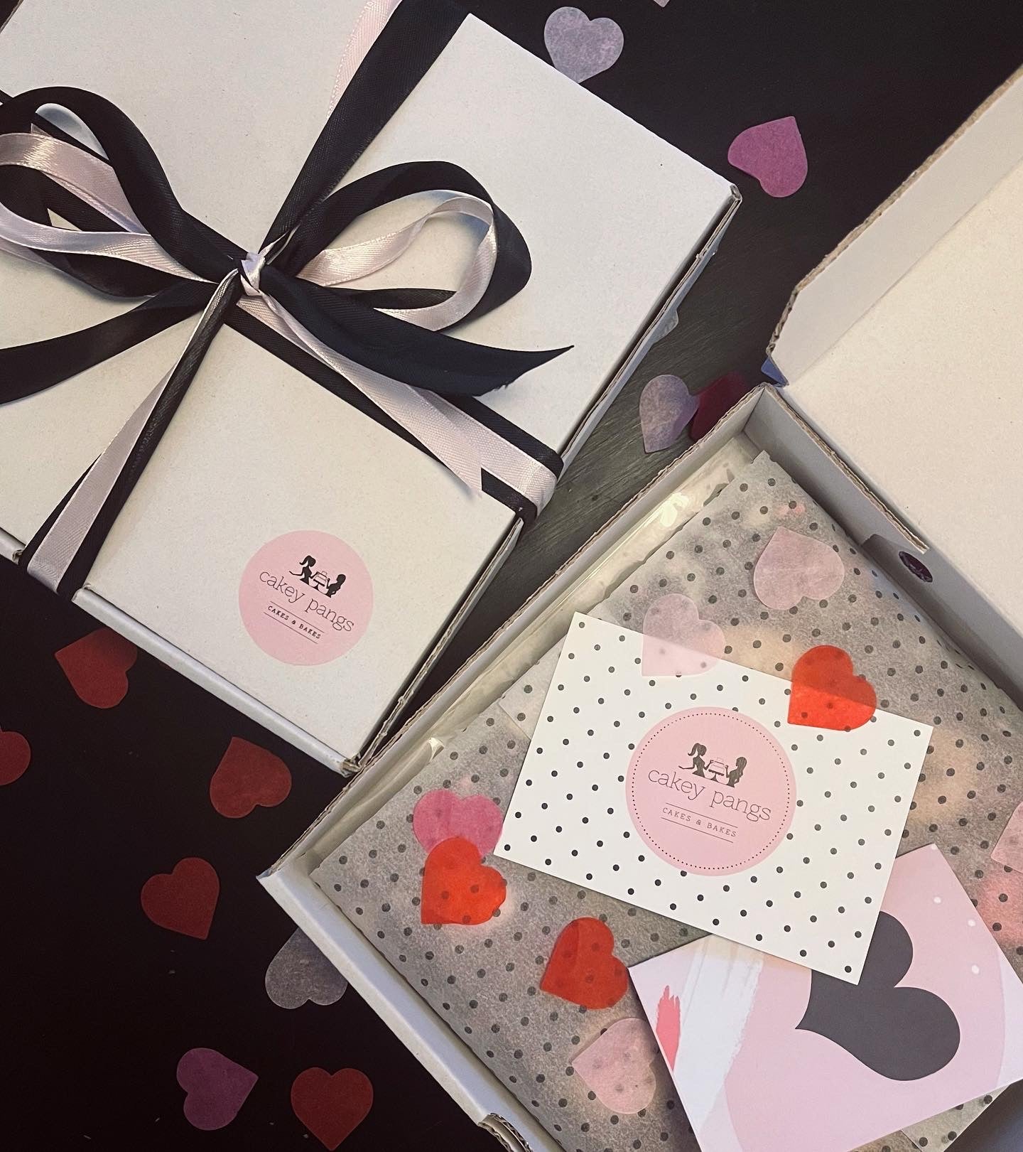 with added heart shaped confetti, a wee handwritten card and tied up all cute with black and pink ribbon!